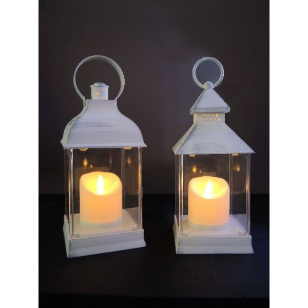 LANTERNA BIANCO CANDELA LED H24CM X2