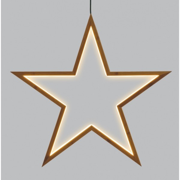 Stella Ø55cm DLW Legno Naturale Chiaro, illuminazione interna con Strip smd Led SuperBright bianco caldo 3000°K, serie Design Light, Struttura Lamellare in pregiato Legno Massello, Luce Fissa, Trasformatore Bassa Tensione, IP20 uso Interno, Interruttore On-Off, Cavo di Alimentazione Nero 4m