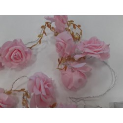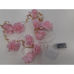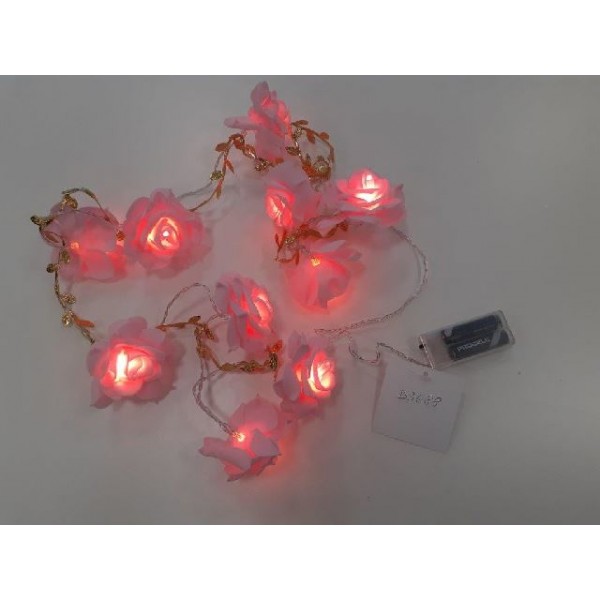 ROSE ROSA FOGLIE ORO 10 LED BIANCO CALDO