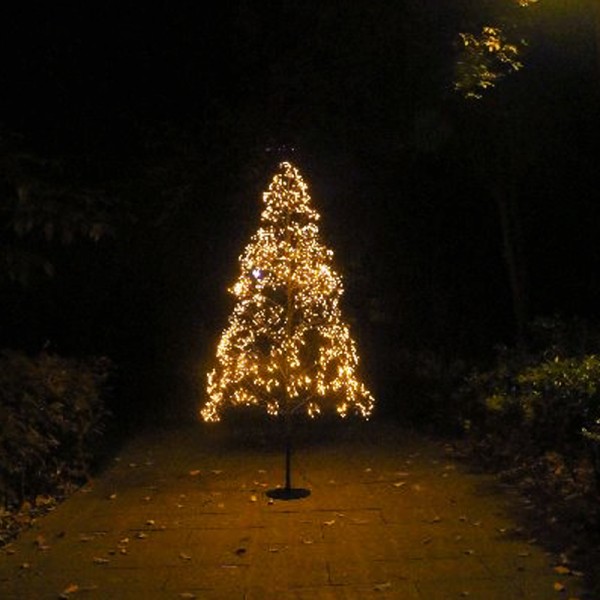 Albero luminoso a ciuffi con LED bianco caldo e flash. Struttura in metallo, H180, 2250 LED. Cavo 5 metri e trasformatore IP44 per esterni.