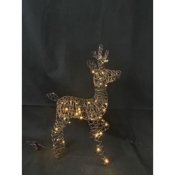 Porta l'incanto natalizio nei tuoi spazi outdoor con questa deliziosa renna in rattan marrone, alta 79 cm e illuminata da 60 LED a luce calda. Le sue linee eleganti e le dimensioni ridotte la rendono ideale per balconi, ingressi, giardini o vetrine, diffondendo un bagliore naturale e festoso. Il design essenziale ma d'impatto evoca la tradizione natalizia, mentre l'alimentazione elettrica e la protezione IP44 assicurano sicurezza e durabilità anche all'esterno. Perfetta per chi cerca decorazioni raffinate e pratiche, anche in ambienti compatti, questa renna aggiunge calore autentico alle tue feste.