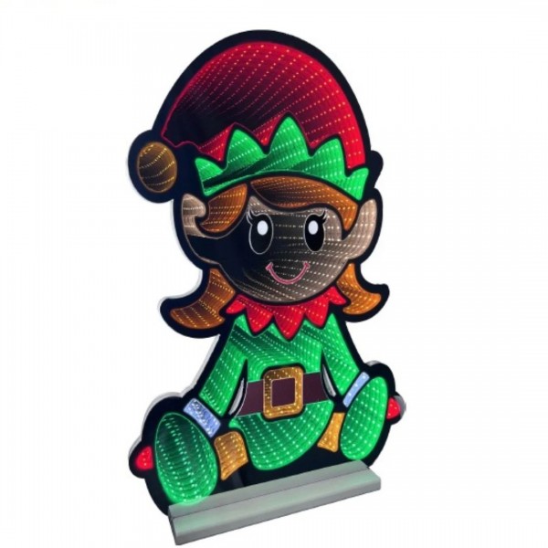 L'Elfo Girls seduta Luminosa Effetto Infinity è una decorazione per interni cattura immediatamente lo sguardo grazie al suo spettacolare gioco di specchi e luci LED, che crea un'illusione ottica di profondità infinita. La sagoma stilizzata misura 60 cm di altezza, è completata da una base robusta che ne garantisce la stabilità su qualsiasi superficie piana. Perfetto per il salotto, un ingresso accogliente o come punto focale nella tua vetrina festiva, questo elfo "infinity" diffonde un'atmosfera calda e incantata, portando la vera essenza delle festività direttamente a casa tua. È l'ideale per chi cerca un complemento d'arredo natalizio moderno, originale e di grande impatto visivo.