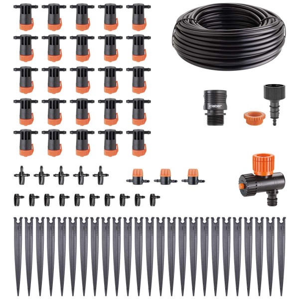 Tutto quello che serve per realizzare da soli, facilmente e senza alcun attrezzo, un impianto a goccia per le piante in vaso, regolando la quantità d’acqua distribuita a ogni singola pianta.